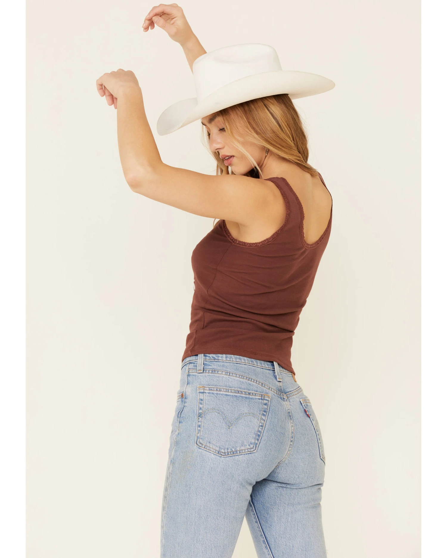Bandit Brand Women’s Hippie Heart Graphic Lace Trim Tank Top