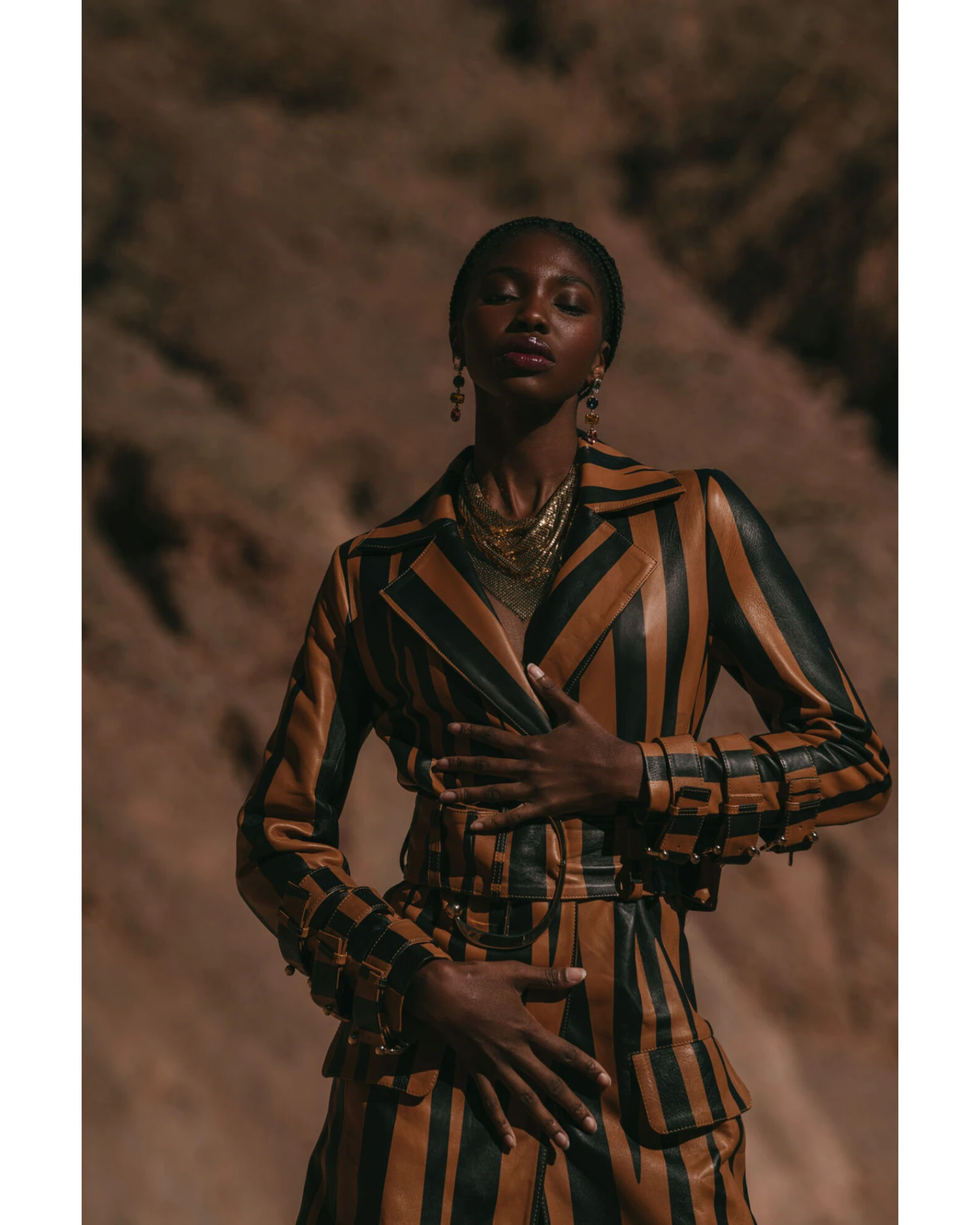DANCASSAB Women’s Diana Zebra Stripe Leather Coat