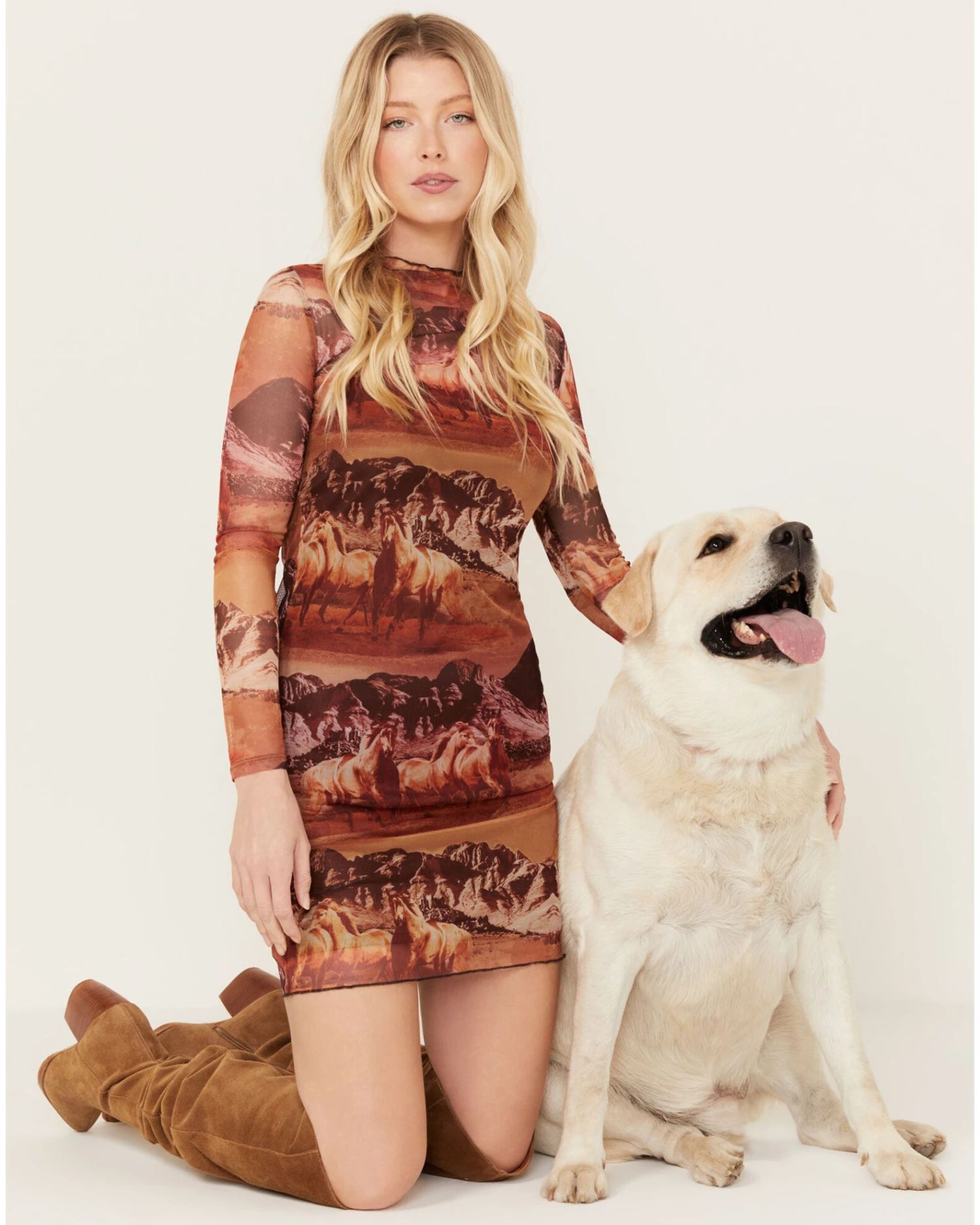 Rock & Roll Denim Women’s Mesh Printed Long Sleeve Dress