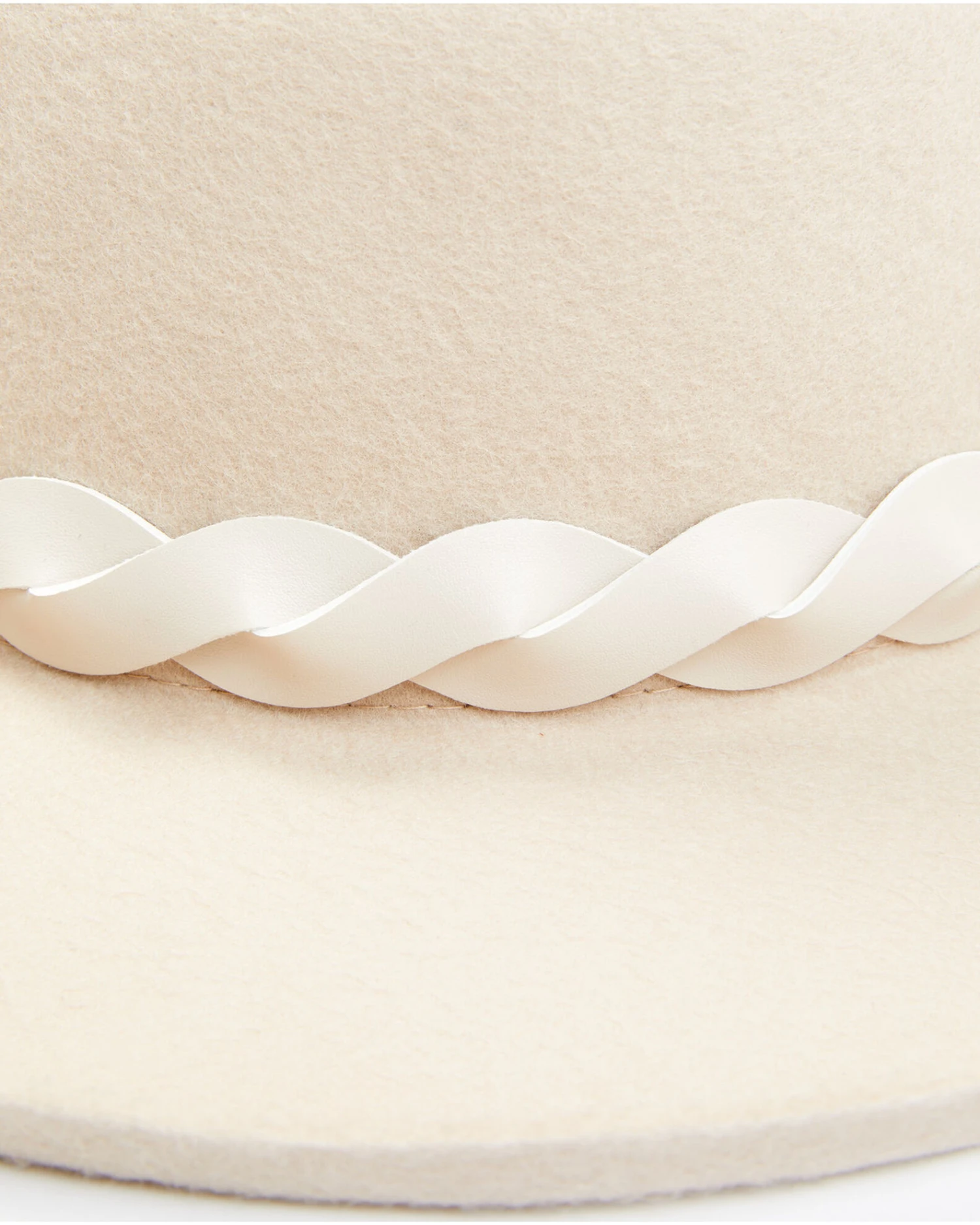 Shyanne Women’s Beige Diamond Crown Turned Up Wool Felt Fedora Hat