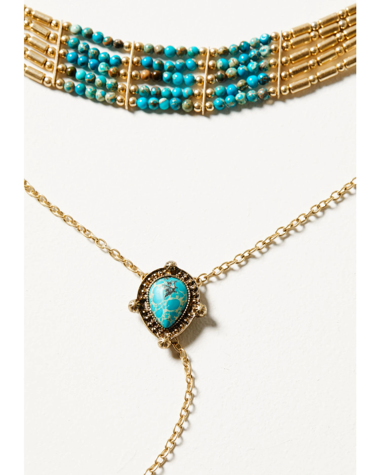 Shyanne Women’s Golden Turquoise Beaded Choker Necklace