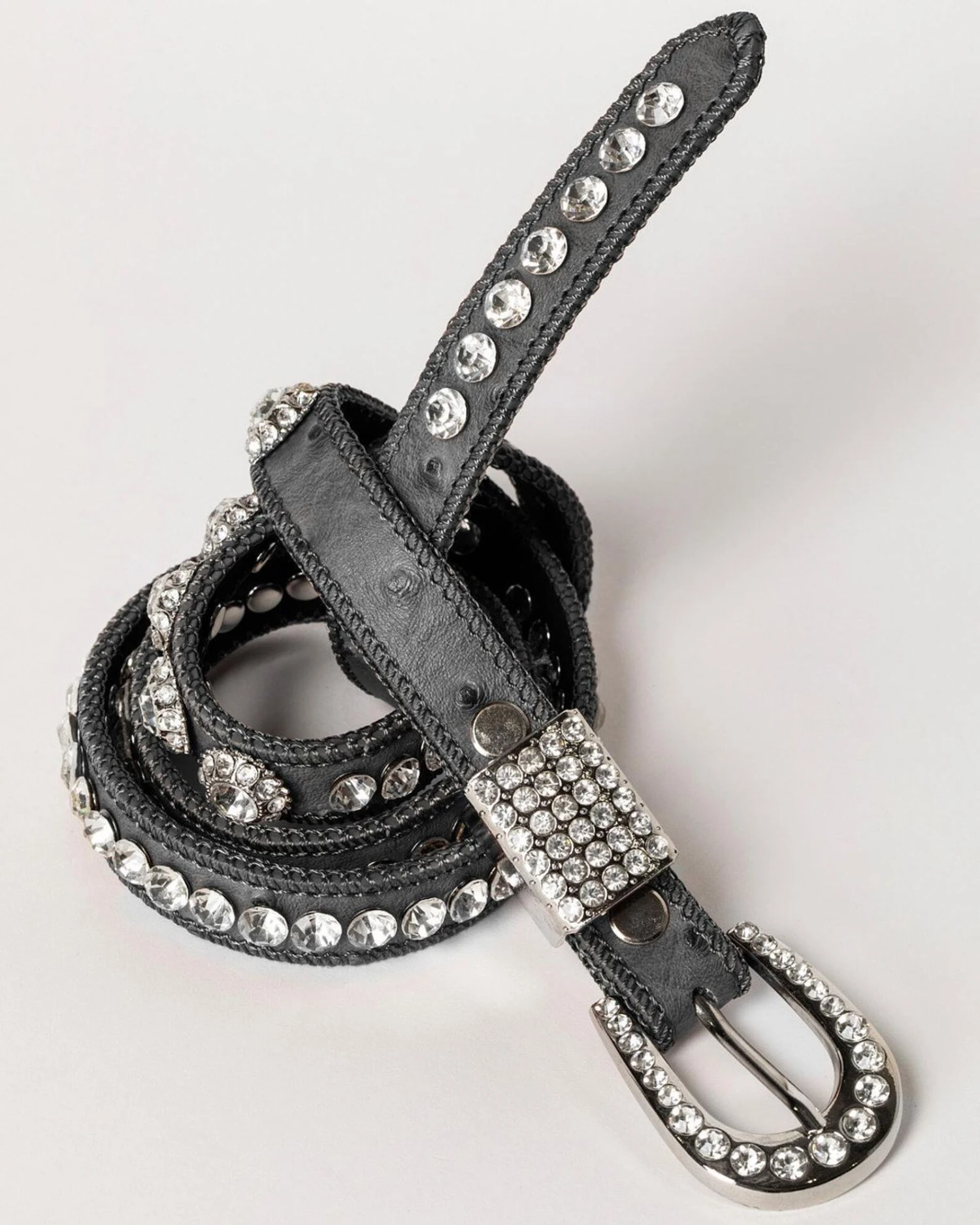 Get the same fashionable look with this Shyanne Rhinestone Belt as seen on Reese Witherspoon on the cover of Elle Magazine! Bling yourself out with this Shyanne® Women’s Rhinestone Belt. This belt is made of genuine leather and features a faux full-quill ostrich design and more rhinestones than you can count all around it. The buckle and metal-tip also feature a plethora of rhinestones, making this the most blinged out belt on either side of the Mississippi. Treat yourself, because if you don’t, who will?