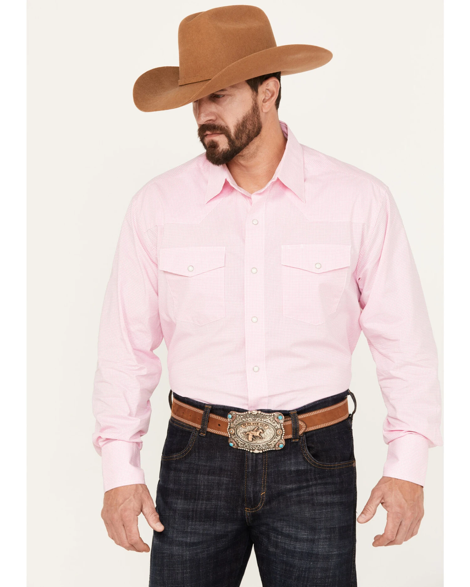 Wrangler Bucking Cancer Men’s Checkered Print Long Sleeve Button Down Western Shirt