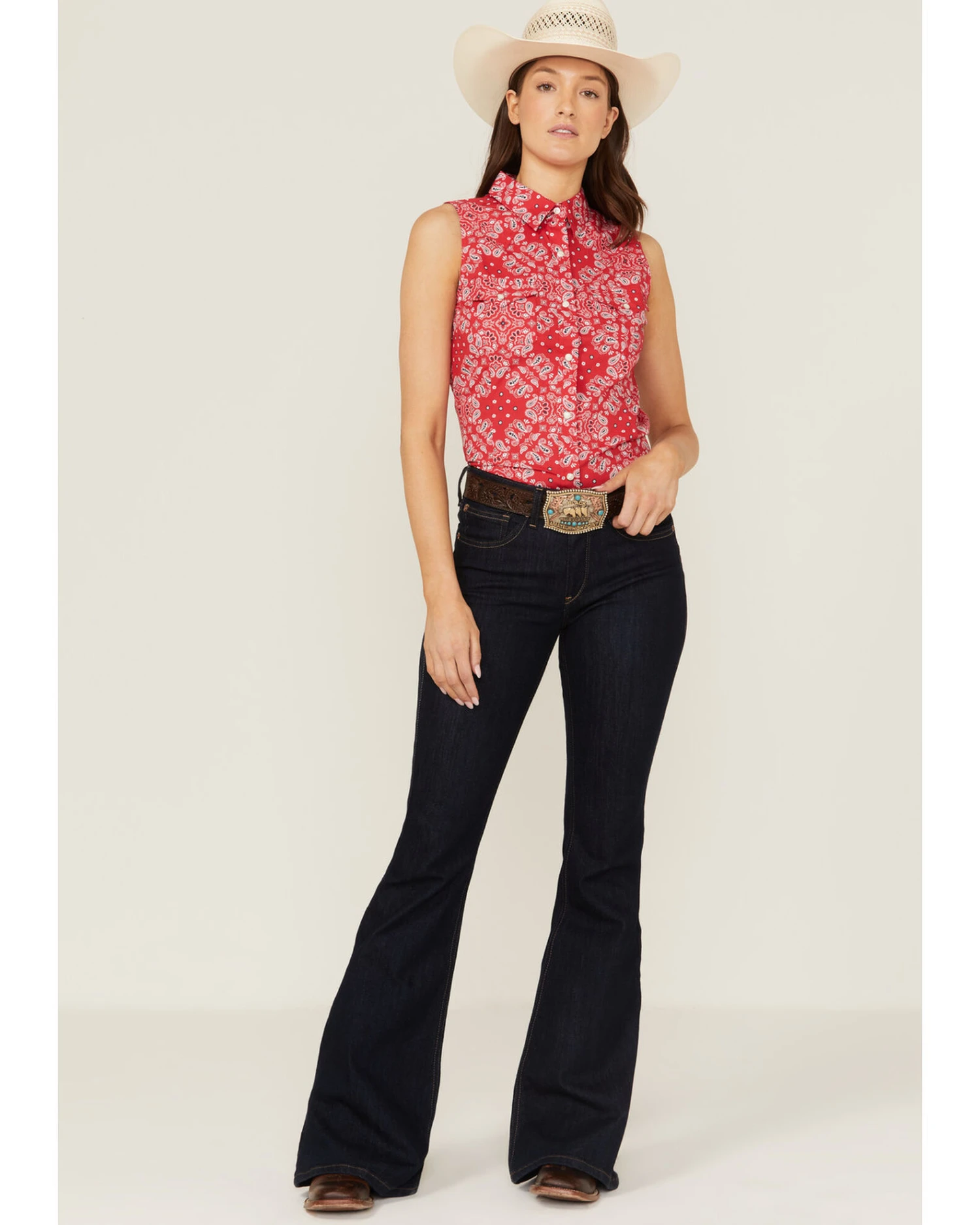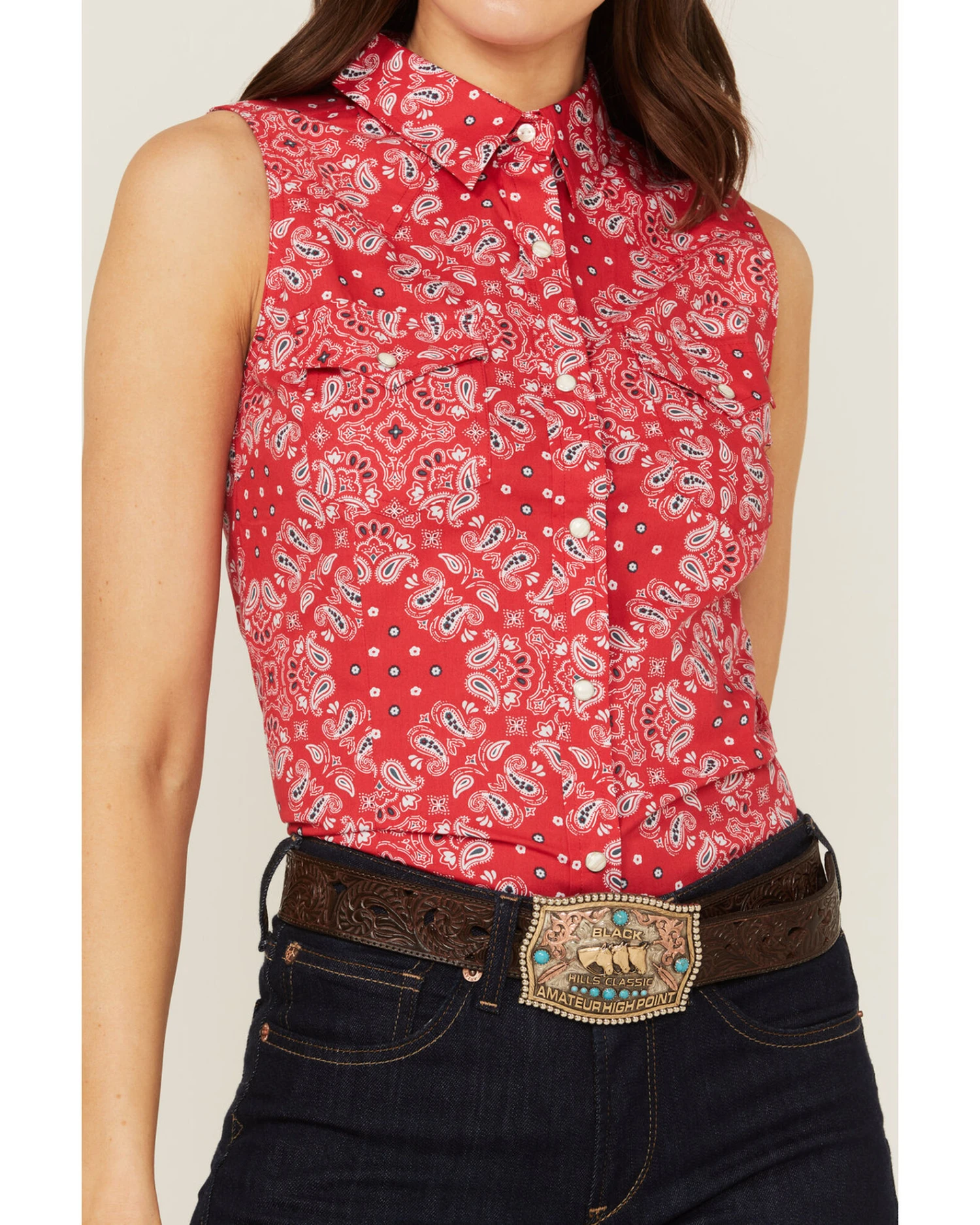 Wrangler Women’s Americana Paisley Print Sleeveless Snap Western Shirt