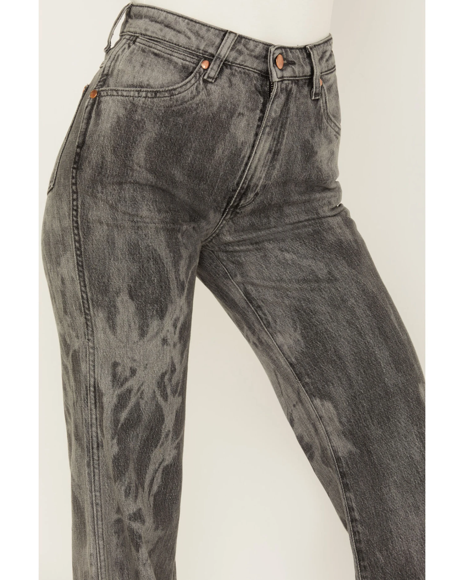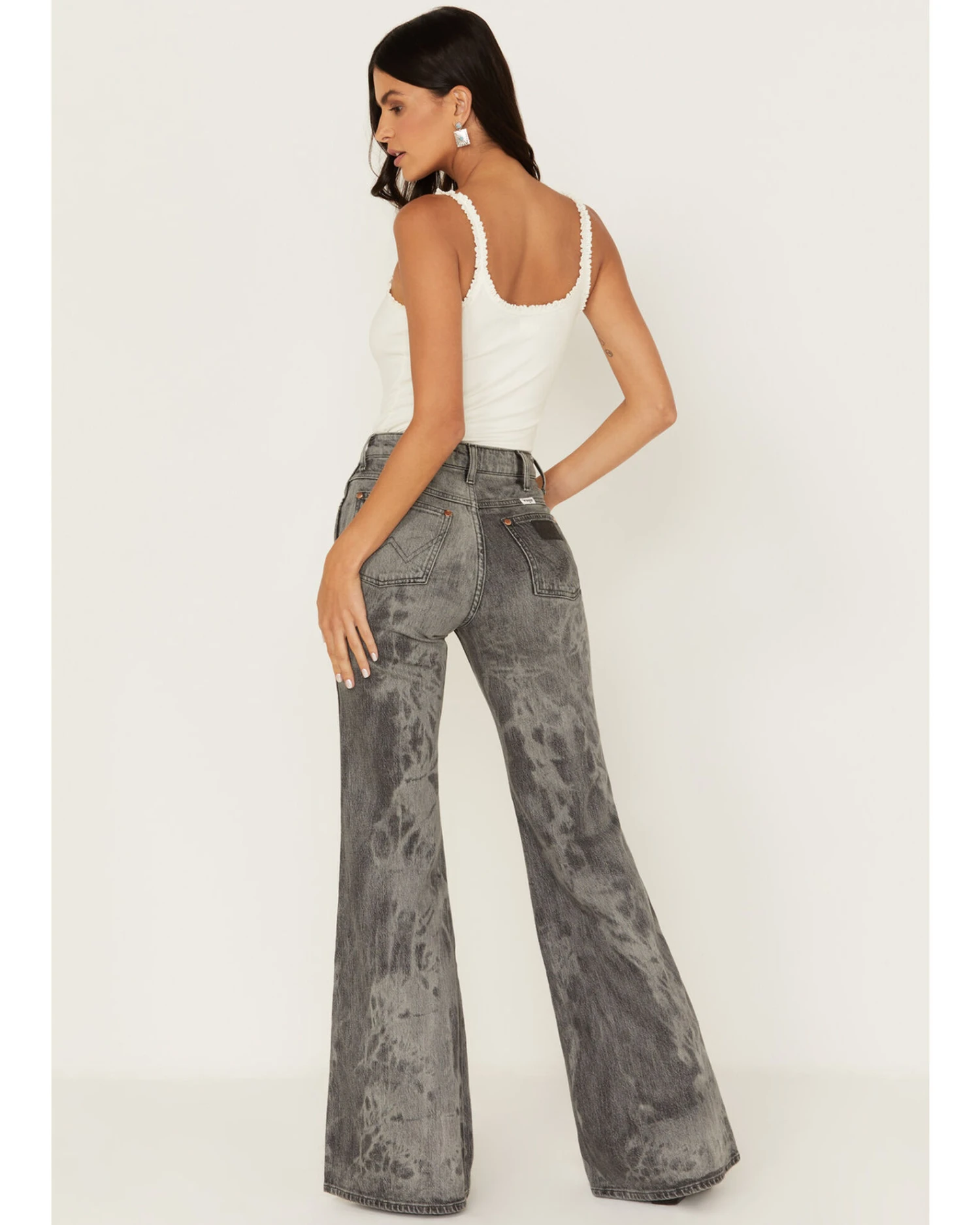 Wrangler Women’s Wanderer Laser Acid Wash High Rise Distressed Flare Jeans